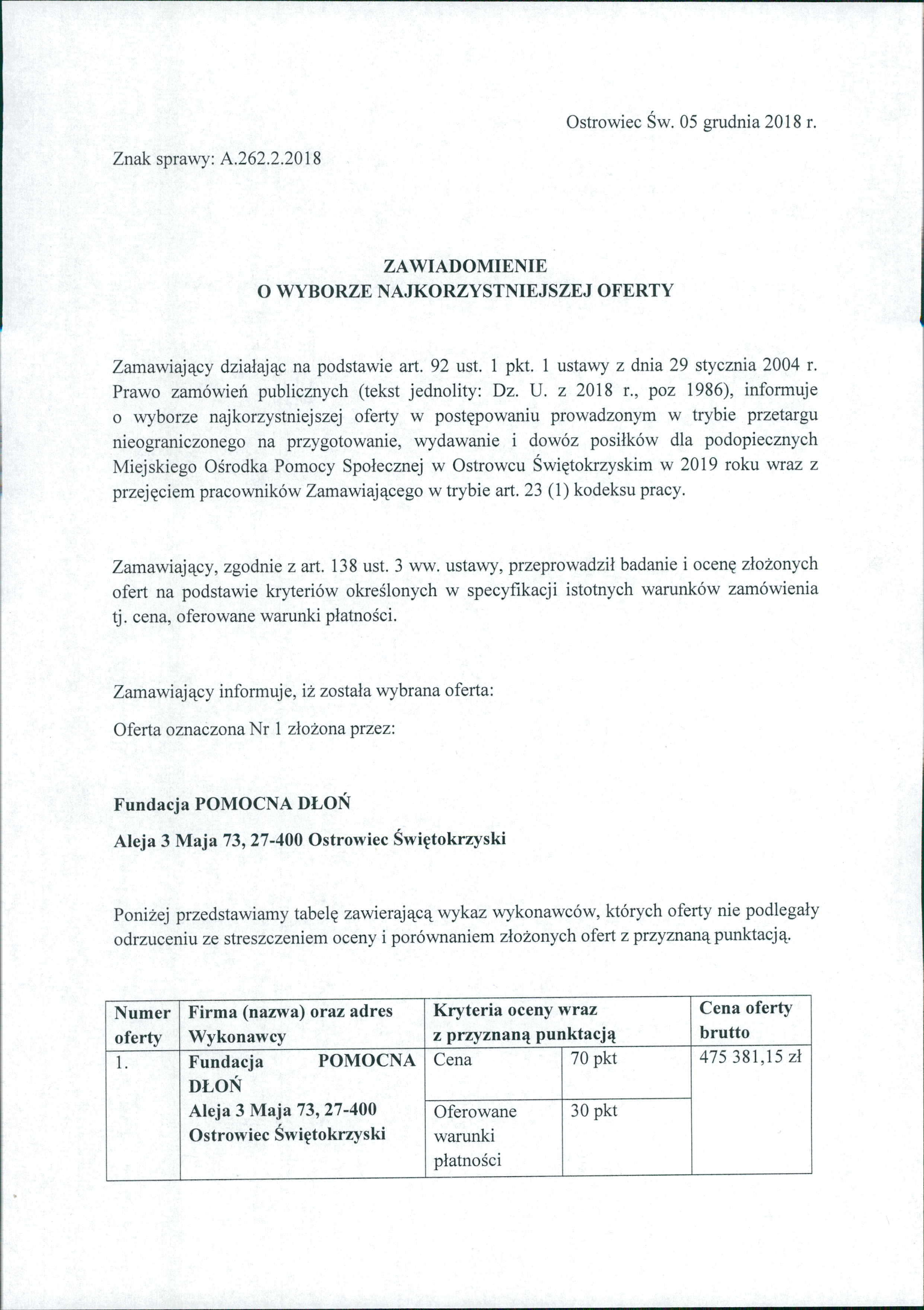 Zawiadomienie o wyborze najkorzystniejszej oferty str 1